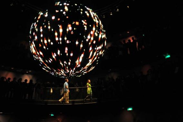 例如,在澳門新濠天地一個(gè)展廳中,設(shè)計(jì)師設(shè)計(jì)了一個(gè)360度立體動(dòng)感的、聲光電技術(shù)結(jié)合的表演《龍騰》,其實(shí)就是一個(gè)環(huán)幕全景式電影展示,通過一個(gè)故事性的描述“龍的誕生與追尋”,體驗(yàn)360度影像技術(shù)帶來的巨大視聽震撼。這種表現(xiàn)方式具有打破時(shí)空局限的較強(qiáng)表現(xiàn)力,能令參觀者產(chǎn)生極強(qiáng)的身臨其境的參與感。